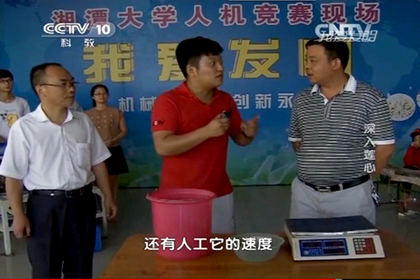 三翼新聞?dòng)?/span>(實(shí)習(xí)記者 王聰艷)10月17日,央視教育頻道《我愛發(fā)明》欄目播放了湘潭大學(xué)機(jī)械學(xué)院教授馬秋成發(fā)明和改進(jìn)全自動(dòng)蓮子去心機(jī)的全過程。 “湘蓮甲天下,潭蓮冠湖湘”。湘潭市蓮子素來以粒大飽滿,質(zhì)地細(xì)膩,清香鮮甜聞名。但千年來,湘蓮的蓮子去心生產(chǎn)始終是傳統(tǒng)人工方法。工人通過鋒利的鉆頭來去除堅(jiān)硬的蓮心,雖然操作簡(jiǎn)便,但這鐘種方法不僅費(fèi)時(shí)費(fèi)力,效率低下,而且存在極大的危險(xiǎn)性。在這種情況下,土生土長(zhǎng)的馬教授決心改變這種傳統(tǒng)的去心方式。 馬教授的一代機(jī)是利用鏈條轉(zhuǎn)動(dòng)來移動(dòng)蓮子,通過高速旋轉(zhuǎn)的鉆頭來去除蓮子。但在一代機(jī)的生產(chǎn)過程中易出現(xiàn)鉆頭打偏的問題,并且蓮心易被污染。在經(jīng)過幾天深思之后,馬教授改進(jìn)了一代機(jī),于是二代機(jī)誕生了。二代機(jī)相較于一代機(jī),蓮子的出產(chǎn)量、打孔精確度都有了明顯的提高,但是由于蓮子大小不一以及鉆頭旋轉(zhuǎn)時(shí)直徑會(huì)擴(kuò)大,因此導(dǎo)致了生產(chǎn)過程中蓮子的浪費(fèi)。 面對(duì)手工工人“這機(jī)器一定有問題,不行”的咄咄逼人,馬教授卻表示自己有信心,自己已發(fā)現(xiàn)了不足,他相信自己會(huì)改好二代機(jī)!幾日后,在琴湖食府人機(jī)大戰(zhàn)拉開了帷幕。八名人工對(duì)戰(zhàn)機(jī)器。改良后的三代機(jī)通過調(diào)節(jié)蓮子位置的壓板,在數(shù)量和質(zhì)量口感上贏過了人工。最終,馬教授的全自動(dòng)蓮子去心機(jī)贏得了比賽!