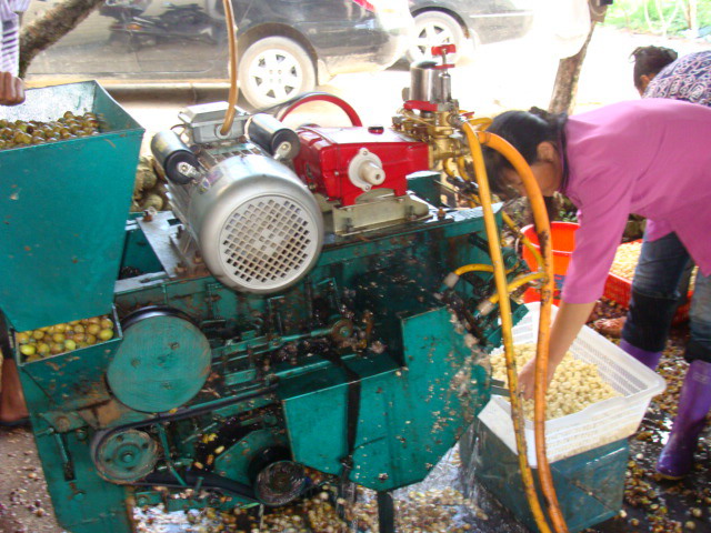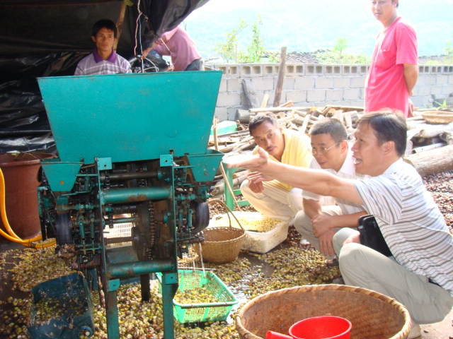 近日,由縣科技局資助引進(jìn)二臺蓮子剝殼去膜一體機(jī)在黃埠陳余中試,喜獲成功,深受賢河、大余、陳余、桂陽沿線四個村的蓮農(nóng)的歡迎。該機(jī)已24小時全天候運(yùn)行了一個星期,真正實(shí)現(xiàn)了蓮子一次性脫殼去膜的機(jī)械化、工廠化加工,從測試的效果看每小時可加工蓮子30公斤,脫殼率達(dá)97%以上、脫皮率95%以上、破損率在3%以下。該產(chǎn)品顛覆了傳統(tǒng)的蓮子脫殼去膜機(jī)理,采用自動定位、定時、皮帶輸送、單粒切割、彈性擠壓脫殼,高壓水流柔性摩擦去皮,整個過程一體化完成。